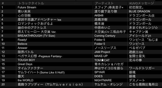 Minnieさんの カラオケアニソンランキング みんなのランキング
